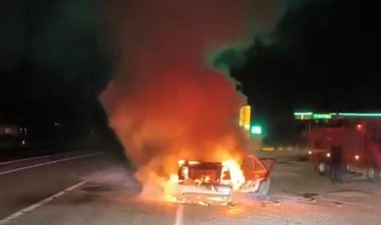 Seyir halindeki otomobil alev alev yandı
